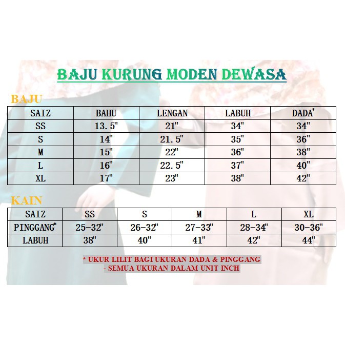 Luas lengan (a) 0.5 4. Khususnya di negara jepun korea serta china. Berharap postingan ukuran saiz baju kurung moden diatas bisa berguna buat kamu.
